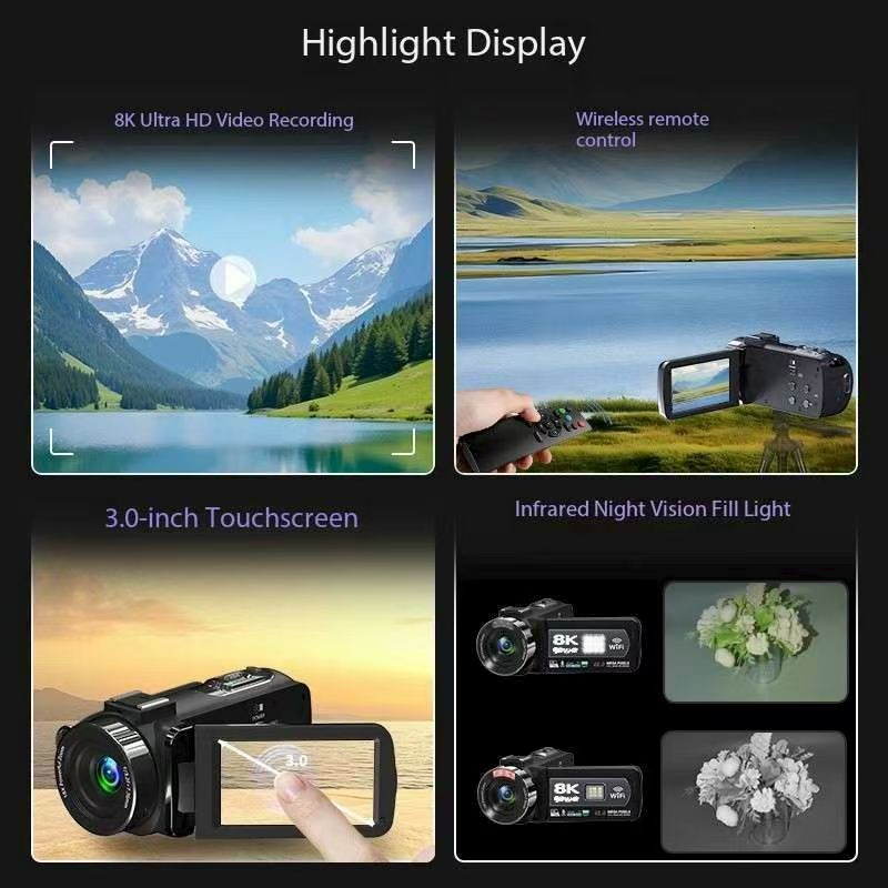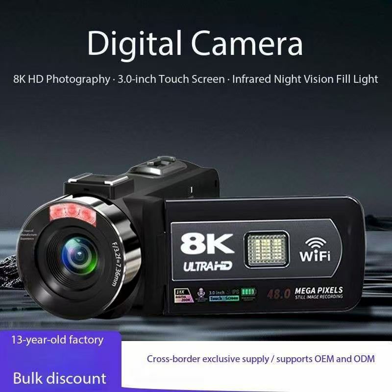 This digital video camera is manufactured by a Chinese manufacturer and features infrared night vision and fill light, a DV camera, 8K resolution, a 3.0-inch touch screen, a USB port, stereo sound, and a sensor type. It can be used for outdoor filming. Buying it will enhance your status and position and leave a legacy for your youth. Place your order now, as it contains more than you can imagine.